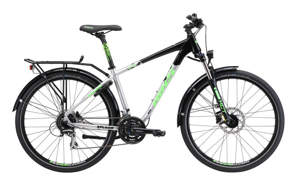 Wie der Zusatz EQ im Modellnamen verrät, ist das SPLASH 400 EQ ab Werk mit einem Nabendynamo von Shimano, einer zeitgemässen Lichtanlage von Trelock sowie einem Gepäckträger und Schutzblechen aus Aluminium ausgestattet. Dazu kommen leicht laufende Reifen von Schwalbe und eine Reihe hauseigener Anbauteile. So macht dieses Bike im Alltag, aber auch bei Fahrten in gemässigtem Gelände wie Wald- und Uferwegen eine gute Falle. Und ist damit ein ungemein vielseitiger Begleiter.
